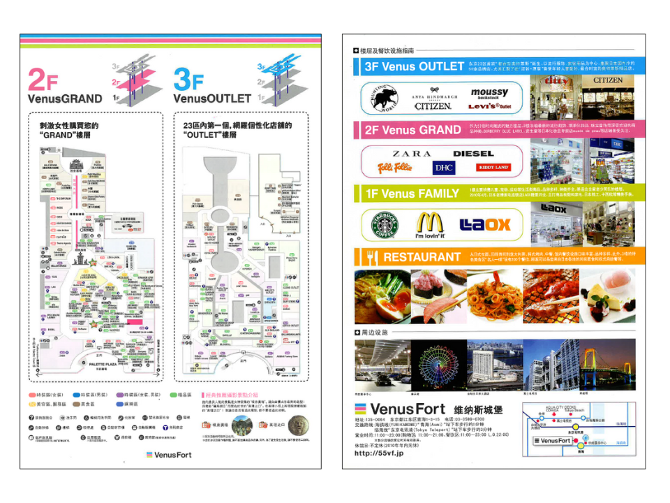 クーポンチラシには、商業施設のマップ、主要ショップ情報を掲載。訪日観光客が迷わず目的地に到着できるよう、分かりやすい地図と店舗名表記を採用しました。また、現地旅行代理店やインバウンド旅行会社との連携により、ターゲット層への効率的な情報提供が可能となり、キャンペーンの認知度向上に貢献しています。